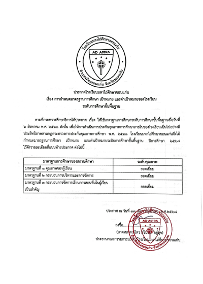 ประกาศ การกำหนดมาตรฐานการศึกษา เป้าหมาย และค่าเป้าหมาย